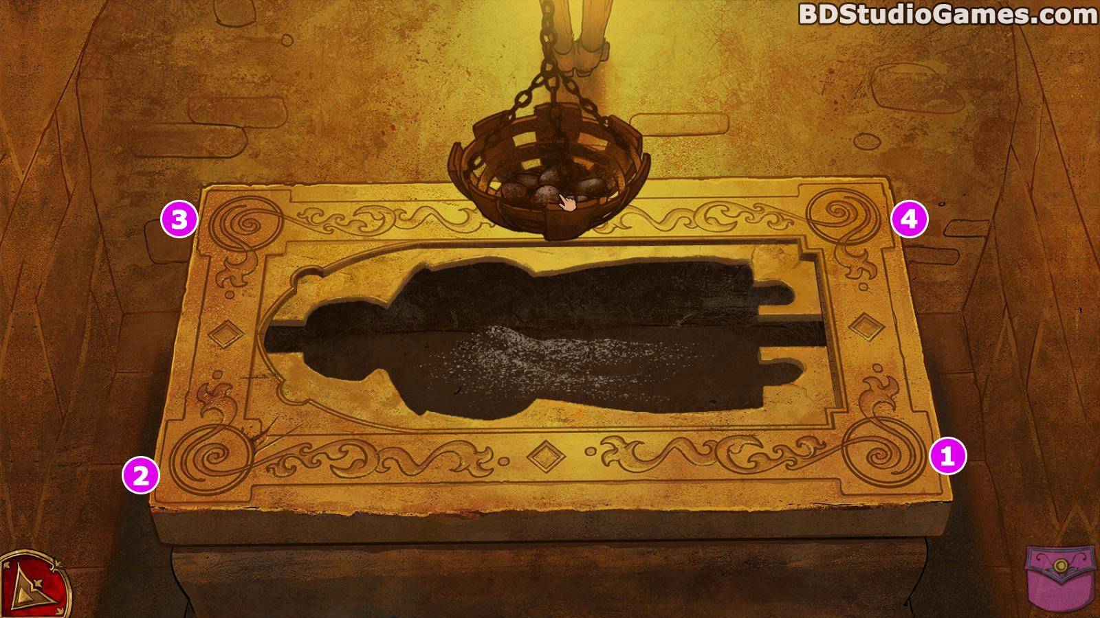- Solve the puzzle, rotate all of the four stone wheels to match the coffin.