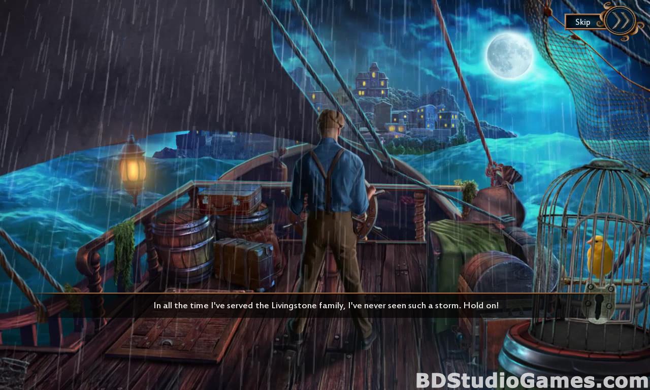 I haven't seen them since I left the island more than twenty years ago, but we kept in touch. You picked a grim time to return to your island home, Miss Smith. Death hangs in the air here... In all the time I've served the Livingstone family, I've never seen such a storm. Hold on!