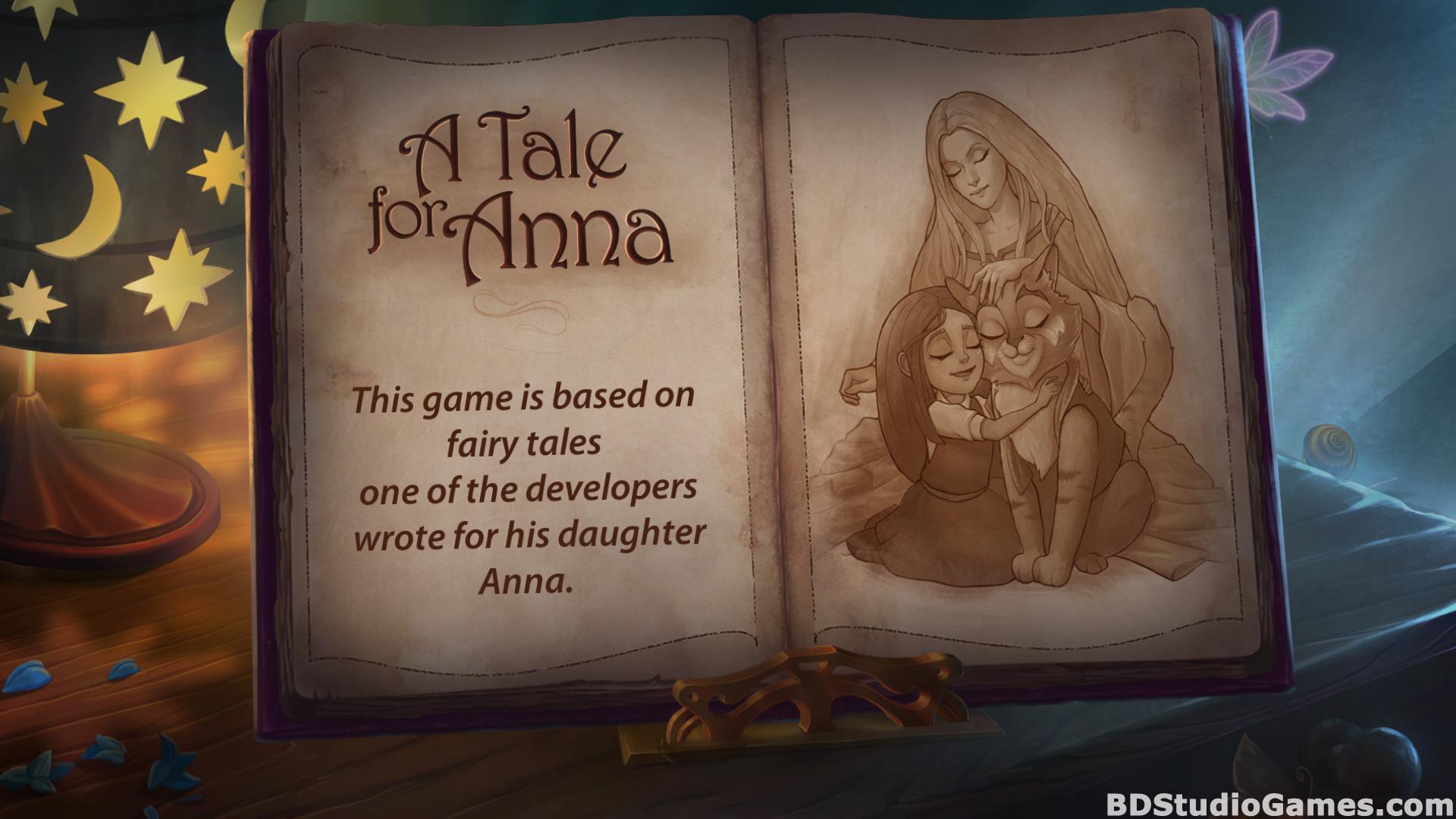 Based on the fairytale stories that one of the game's creators wrote for his daughter, A Tale for Anna tells the story of young Anna, the last sorceress in her kingdom! Raised by a talking cat named Tail, Anna is on the verge of a life-changing discovery that will reveal the truth of who she is. But the evil Queen intends to steal Anna's innate magic and use it to bring about an age of darkness! Step into an enchanting world of magic that is packed with puzzles and brimming with captivating characters. Explore the game's enchanted worlds, play challenging minigames, and collect the objects Anna needs to progress as you gradually reveal an unforgettable story of humor and heart. Can you help Anna stop the Queen and fulfill her destiny? Find out in this memorable Hidden-Object Puzzle Adventure game!